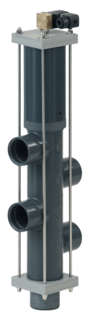 Die Durchflussarmatur ist zur Aufnahme der Messfühler ausgelegt. Dosierungen von Pflegemitteln können visuell kontrolliert werden. Zum Schutz der Durchflussüberwachung ist ein Vorfilter standardmässig eingebaut. Ein Montageset erleichtert den Einbau der Regelanlage in das Gesamtsystem.