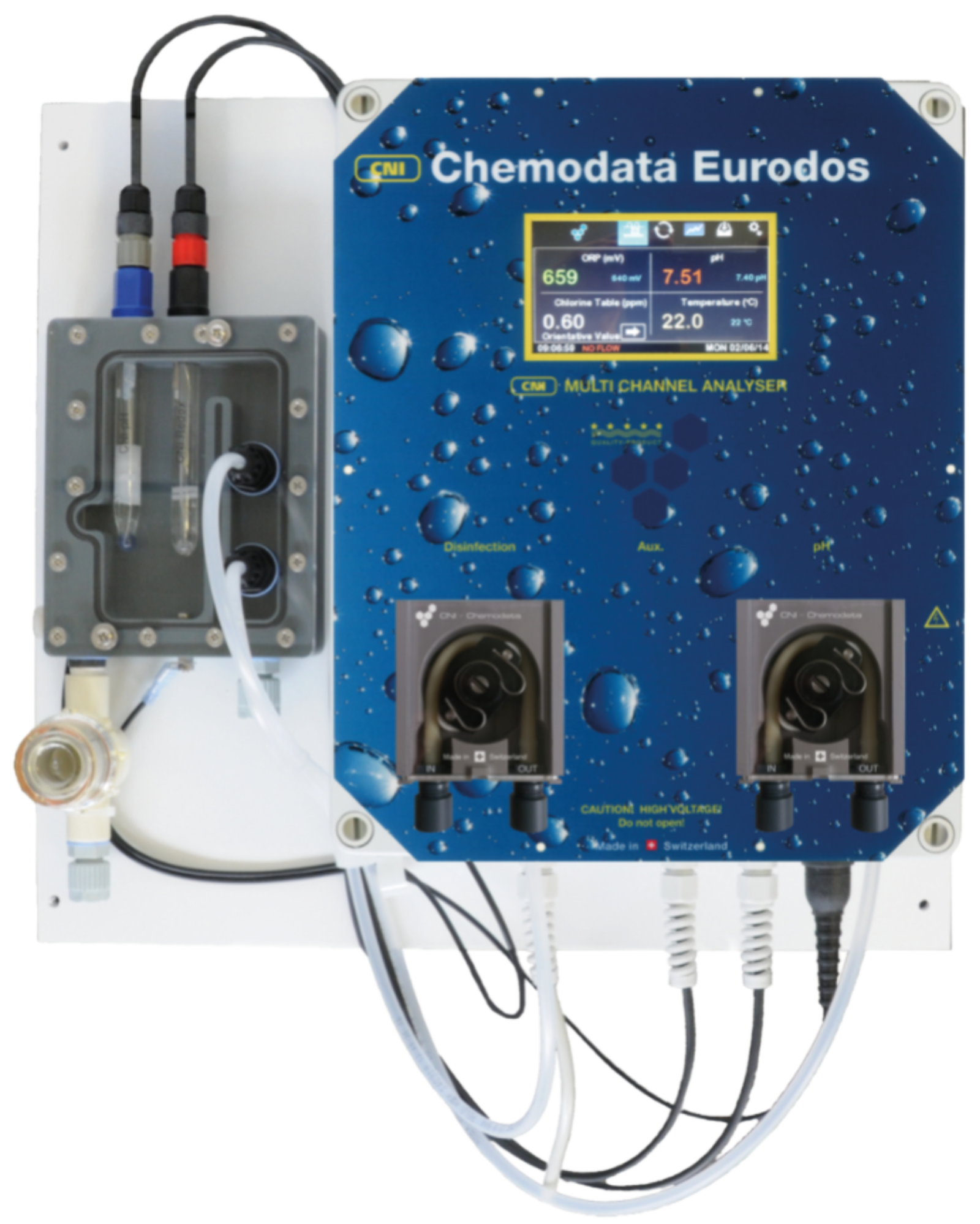 Die Eurodos Dosieranlage ist eine elektronische Messund Regelanlage für Schwimmbäder. Mit grafikfähigem Display, neuster Modulmesstechnik, komplett vormontiert mit 2 Dosierpumpen, Vorfilter und Durchflussüberwachung.